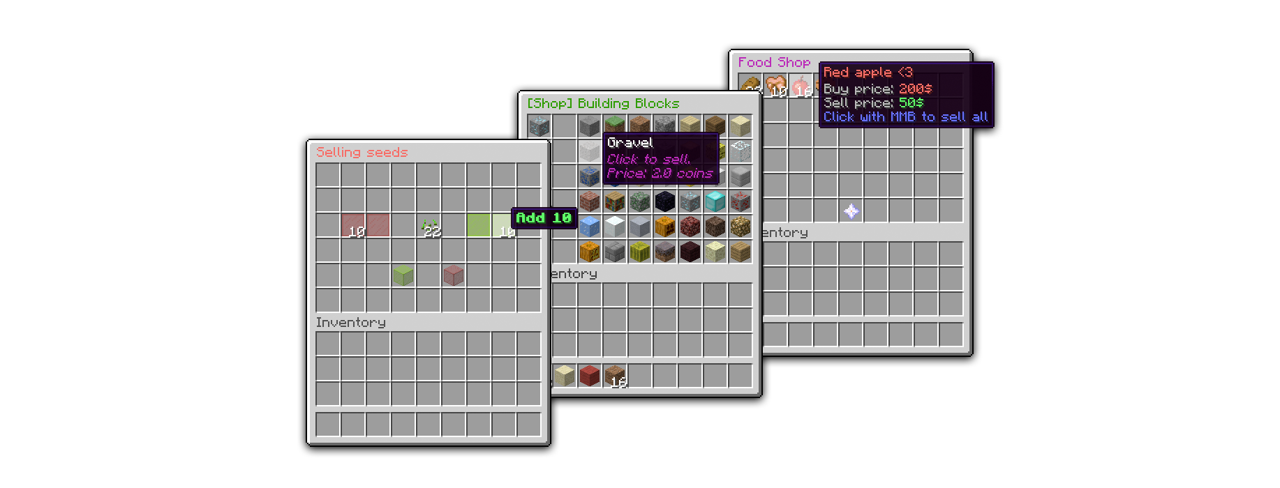 If you've ever played on a popular Minecraft server, chances are good that you've interacted with a GUI shop. Typically accessed with a chat command, these seemingly simple plugins use inventory screens to display a shop to the player where they can buy or sell different resources.